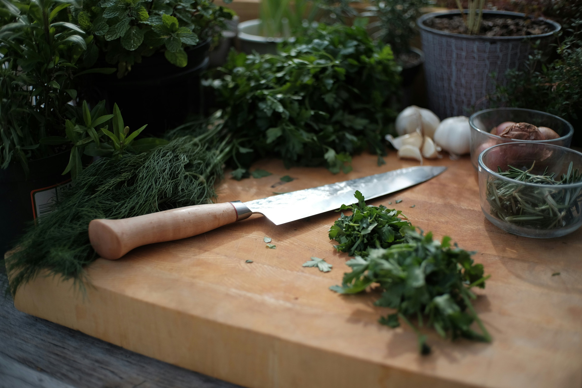 De fleste klarer sig med tre: en kokkekniv, en brødkniv og en urtekniv. Har du særlige behov, kan du supplere med en fileteringskniv eller en Santoku-kniv.